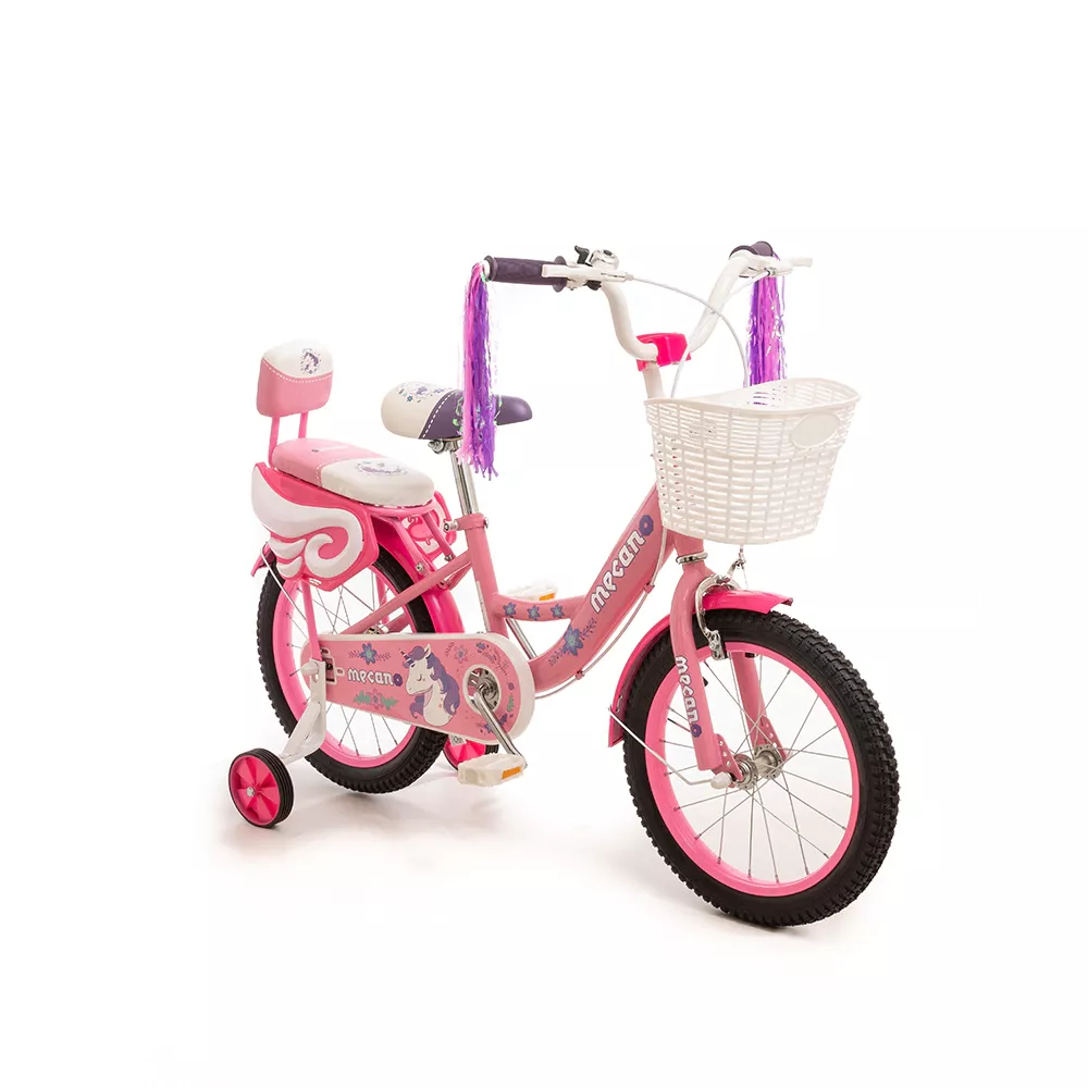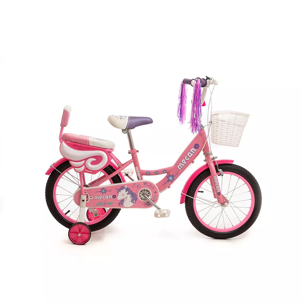 • Cuadro y horquilla de acero. Ruedas inflables con llanta de rayos. Frenos: Delantero V-Brake / Trasero: de cinta o tambor. n• Asiento acolchonado. Guardabarros de metal. Cubre cadena. Pedales de plástico. Rueditas de entrenamiento. n• Canasto de plástico. Asiento de muñecas. Timbre de campanita.