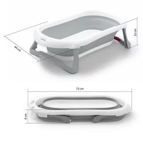 • Bañera Plegable ultra compacta. n• Reclinado con traba de seguridad. n• Manija para colgar o llevar. n• Tapón de drenaje y patas antideslizantes. n• Encastre para duchador de mano.