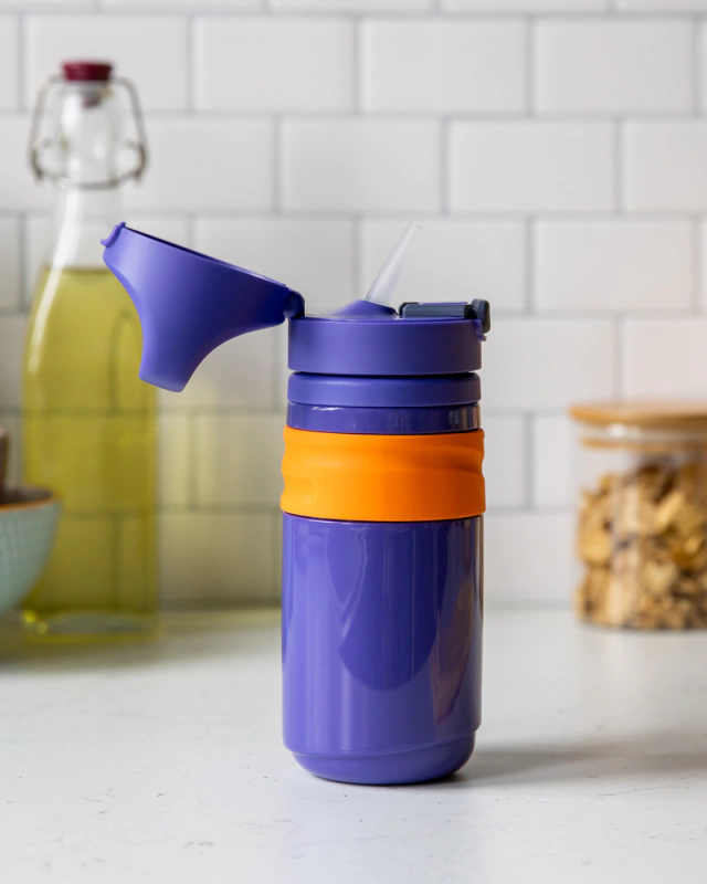 Equipado con una innovadora tecnología antifugas llamada INTELLIVALVE, la botella es completamente a prueba de fugas y sacudidas incluso cuando se gira o se agita. Nuestra válvula única sella y regula el flujo de líquido para detener fugas y garantizar una fácil bebida. Adecuado para niños pequeños de 18 meses y más, la taza Sportee con aislamiento Superstar tiene una apertura mecánica con botón que es fácil de usar con una sola mano. nCon la higiene a la vanguardia de las mentes de todos, nuestras botellas de agua añaden una capa adicional de tranquilidad, ya que la boquilla de silicona para beber contiene tecnología antimicrobiana BACSHIELD que reduce los microbios hasta en un 99.9%*. BACSHIELD es una tecnología de iones de plata de uso común que proporciona protección antimicrobiana contra microbios no deseados**. Funciona evitando el crecimiento de microbios que pueden causar degradación, decoloración, manchas u olor del producto. Para mayor protección contra las marcas de mordedura, la boquilla duradera de una sola pieza es suave para bocas pequeñas, pero lo suficientemente resistente como para soportar dientes pequeños.