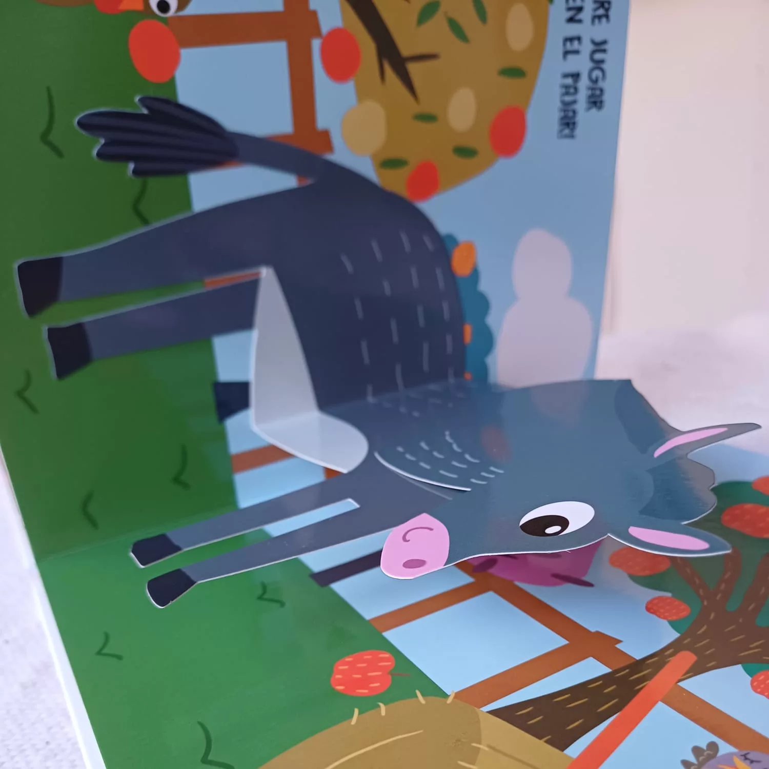 Cada página es un animal en movimiento para descubrir: El perro mueve la cola, el burro mueve su cabeza, el loro despliega sus alas, y el gato se mueve... Colorido libro Pop Up para los mas pequeños.[video width=478 height=850 mp4=https://xn--patoato-7za.com.ar/wp-content/uploads/2025/03/WhatsApp-Video-2025-03-12-at-10.52.01.mp4][/video]