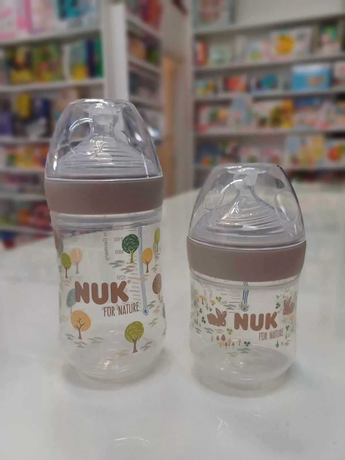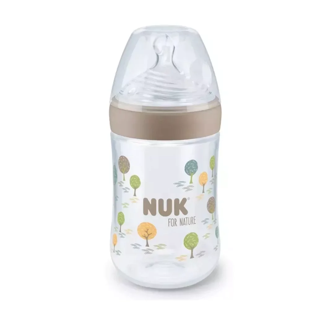 Las mamaderas NUK for Nature están hechos de materias primas 100% naturales, con silicona sostenible y certificada. Fabricados con energía renovable. La tetina tiene pequeas aberturas extra suaves, pensadas en el pezon materno. Dan un flujo suave y natural. El color del indicador de temperatura cambia de azul a blanco si la temperatura del contenido de la mamadera supera los 37°.