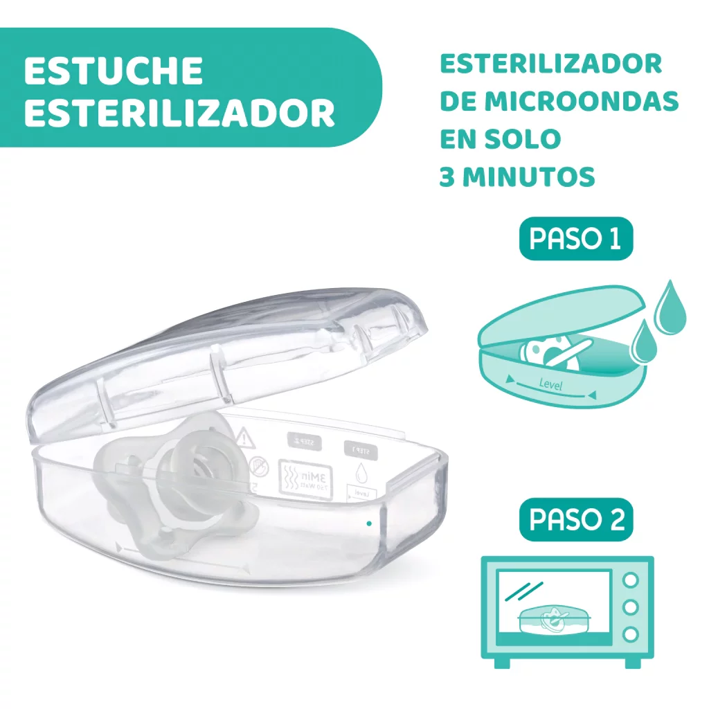 Los chupetes PhysioForma® cuentan con una tetina exclusiva que fomenta el desarrollo correcto y armonioso de la boca y que favorece la respiración fisiológica del bebé, fundamental para el crecimiento. nPhysioForma® MiniSoft son chupetes blandos, pequeños y livianos, son el comienzo perfecto para los recien nacidos. nPresentación: 2 unidades en estuche esterilizador. Colocando los chupetes y agua en el estuche, se pueden esterilizar en el microondas en tan solo 3 minutos.
