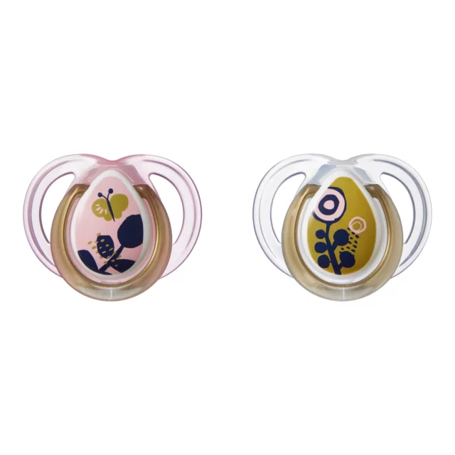 Tommee Tippee ha desarrollado una nueva gama de chupetes aprobados por bebés. La tetina ortodóntica simétrica ha sido diseñada especialmente para ayudar a optimizar la aceptación del bebé y, en pruebas independientes, la mayoría de los bebés los aceptaron desde el primer uso. La tetina en forma de ortodoncia simétrica ha sido diseñada para mejorar el equilibrio, lo que facilita que los bebés sostengan el chupete en la boca y apoyan el desarrollo oral natural. La forma de la tetina en el chupete es más como una tetina para una sensación más familiar para un bebé.