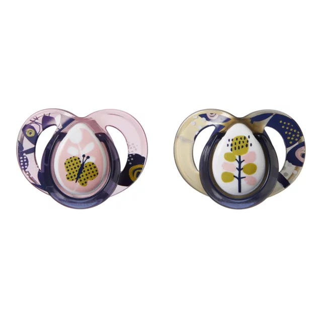 Tommee Tippee ha desarrollado una nueva gama de chupetes aprobados por bebés. La tetina ortodóntica simétrica ha sido diseñada especialmente para ayudar a optimizar la aceptación del bebé y, en pruebas independientes, la mayoría de los bebés los aceptaron desde el primer uso. La tetina en forma de ortodoncia simétrica ha sido diseñada para mejorar el equilibrio, lo que facilita que los bebés sostengan el chupete en la boca y apoyan el desarrollo oral natural. La forma de la tetina en el chupete es más como una tetina para una sensación más familiar para un bebé.