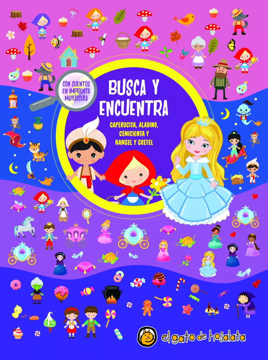 Un libro con cuatro cuentos originales en imprenta mayúscula y cuatro juegos de busca y encuentra. Lee cada cuento y busca y encuentra coloridos y divertidos animales que se esconden en el desierto, en el mar, en el bosque y en la nieve. ¡Lee, juega y diviértete con este original libro!