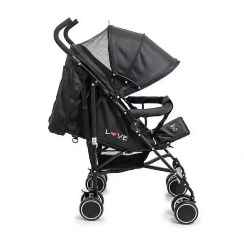 * Multiples posiciones de respaldo n* Reclinacion completa n* Capota curva n* 8 ruedas, 4 giratorias n* 2 manijas fijas ergonomicas con grip n* Apoyapies goma n* Piecera regulable n* Sistema de plegado TAP n* Cinturon de 3 puntos n* Barral delantero n* Canasto n* Peso 5kg aprox. Soporta hasta 18 kilos. n* Plegado ultra compacto n* Medidas plegado. 101cm Alto x 28cm Ancho x 41cm Largo