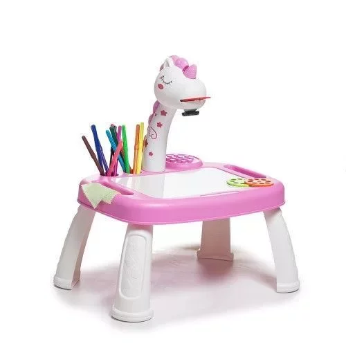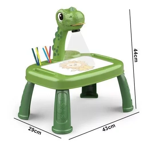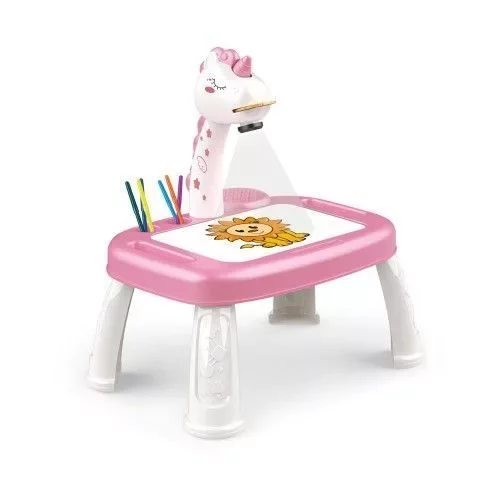 • Pizarra con proyector para calcar, con luz y sonido. n• Incluye 12 marcadores. n• 3 discos con diferentes dibujos (24 dibujos). n• Lleva 3 pilas AAA (no incluidas). n• Medidas: 44 x 26 x 43 cm.