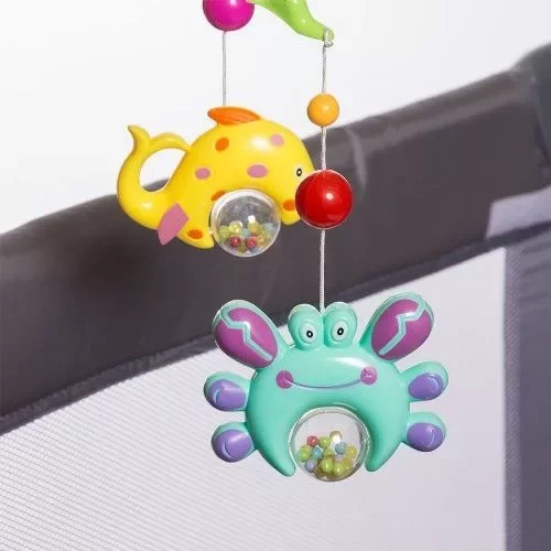• Móvil cunero a cuerda con música y sonidos. n• Anclaje universal. n• Embalaje: 1 x caja.