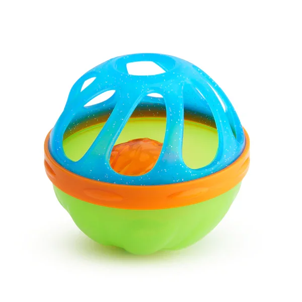Esta pelota de colores brillantes estimula todos los sentidos del bebé, convirtiéndola en el primer juguete de baño perfecto. Tiene múltiples texturas para la exploración táctil, un sonajero para entretenerse y una tapa blanda con agujeros que facilita su agarre. También tiene agujeros para colar, así que puedes usarla para verter suavemente agua tibia sobre tu pequeño. Tu pequeño se divertirá agitando, colando, haciendo sonar y rodando este divertido juguete tanto dentro como fuera de la bañera. n- Estimula los sentidos del bebé. n- Flota en el agua, rueda en la tierra. n- Tapa blanda con agujeros, fácil de agarrar. nRecomendado a partir de 6 meses.