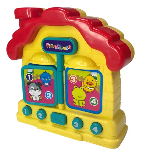 Casita Didáctica con múltiples botones y formas que emiten sonidos y luces, fomentando la exploración y el juego imaginativo. n(Medidas: Largo: 14cm Ancho: 14cm Alto: 3cm)
