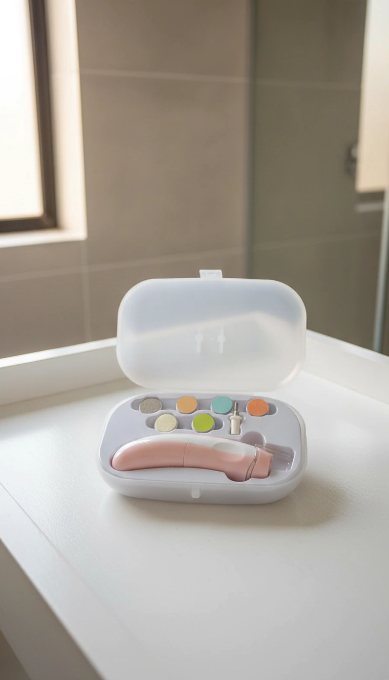 - Función táctil y de parada que evita cortes causados por el movimiento accidental de las manos o pies mientras se liman las uñas.