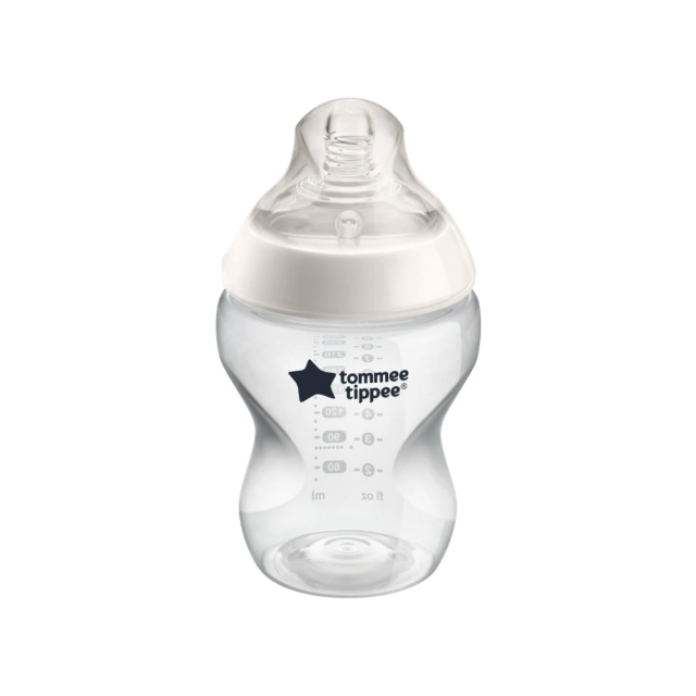Tommee Tippee ha diseñado un biberón ultra con capacidad de 260 ml. nSu tetina de silicona tiene forma de mama para que el agarre del bebé sea lo más natural posible, facilitando la transición del pecho materno hacia la mamadera. nSu base está especialmente pensada para lograr un acople perfecto a la pequeña boca del bebé y así evitar el derrame de leche junto con la ingesta de aires molestos. nEn esta ocasión, su tetina descentrada se encuentra en un lateral para que la posición durante la toma sea la más confortable. nSu textura es blanda y de tacto natural, facilitando el fluido constante de los líquidos. nEl diseño es ergonómico y compacto, ofreciendo un mayor confort y control del contenido del biberón durante la toma. nSu forma exclusiva permite acercar el biberón al cuerpo para que los papás puedan disfrutar del contacto íntimo que normalmente solo disfrutan las mamás a la hora de dar el pecho. El biberón Closer To Nature tiene una válvula anticólico especial. nEste biberón viene equipado con una tetina de flujo medio (+ 3 Meses) nNuestro biberón, es la parte central de un sistema de respaldo a la lactancia que también incluye un extractor de leche, esterilizadores y accesorios especialmente creados para ayudarte a combinar la alimentación con pecho y con biberón. n*Todos nuestros biberones son libres de BPA