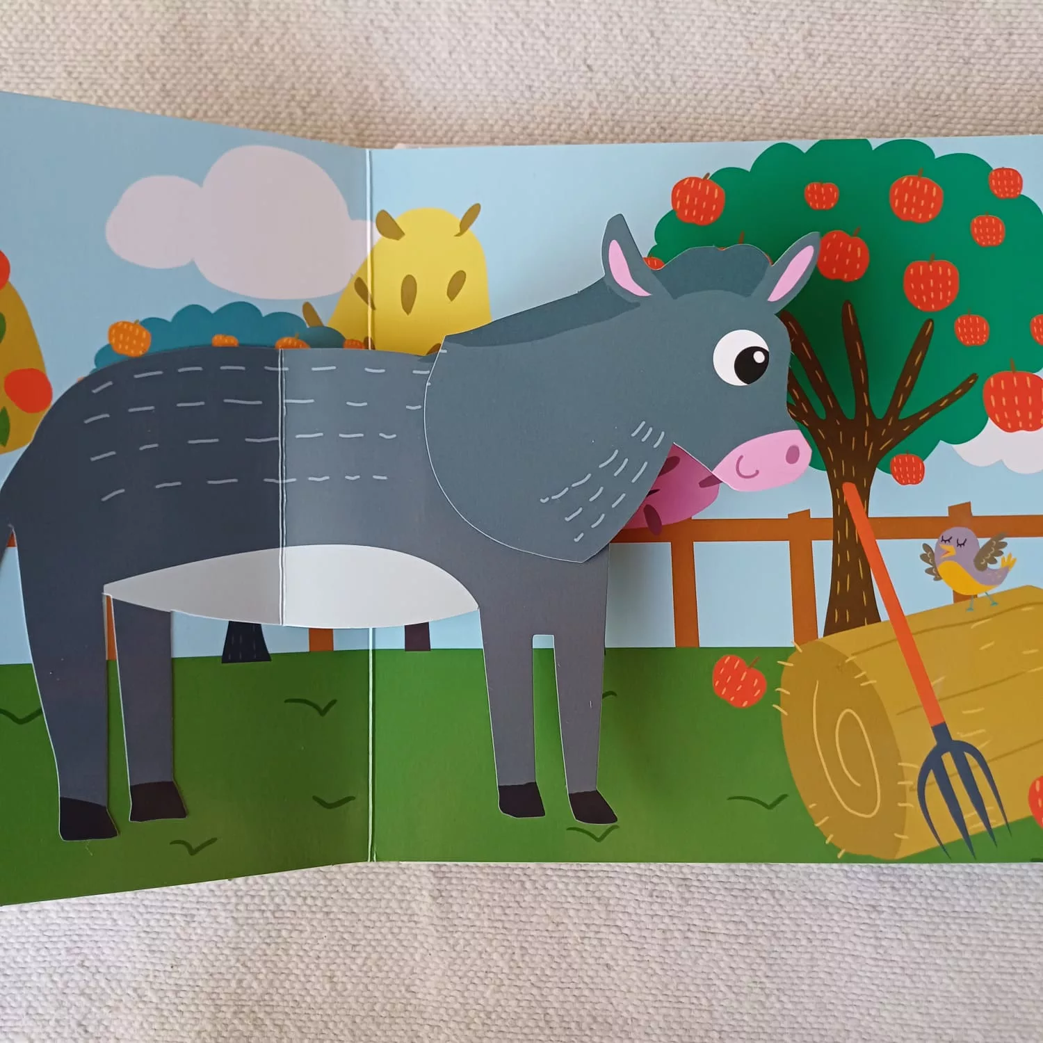 Cada página es un animal en movimiento para descubrir: El perro mueve la cola, el burro mueve su cabeza, el loro despliega sus alas, y el gato se mueve... Colorido libro Pop Up para los mas pequeños.[video width=478 height=850 mp4=https://xn--patoato-7za.com.ar/wp-content/uploads/2025/03/WhatsApp-Video-2025-03-12-at-10.52.01.mp4][/video]