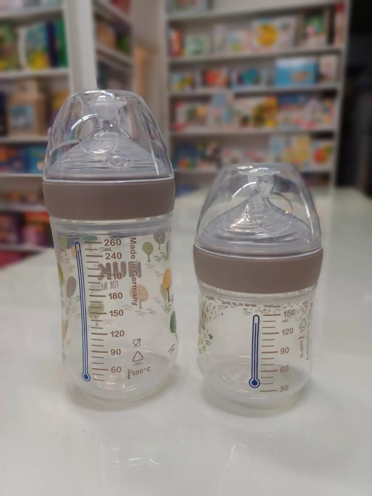 Las mamaderas NUK for Nature están hechos de materias primas 100% naturales, con silicona sostenible y certificada. Fabricados con energía renovable. La tetina tiene pequeas aberturas extra suaves, pensadas en el pezon materno. Dan un flujo suave y natural. El color del indicador de temperatura cambia de azul a blanco si la temperatura del contenido de la mamadera supera los 37°.