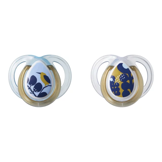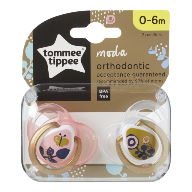 Tommee Tippee ha desarrollado una nueva gama de chupetes aprobados por bebés. La tetina ortodóntica simétrica ha sido diseñada especialmente para ayudar a optimizar la aceptación del bebé y, en pruebas independientes, la mayoría de los bebés los aceptaron desde el primer uso. La tetina en forma de ortodoncia simétrica ha sido diseñada para mejorar el equilibrio, lo que facilita que los bebés sostengan el chupete en la boca y apoyan el desarrollo oral natural. La forma de la tetina en el chupete es más como una tetina para una sensación más familiar para un bebé.