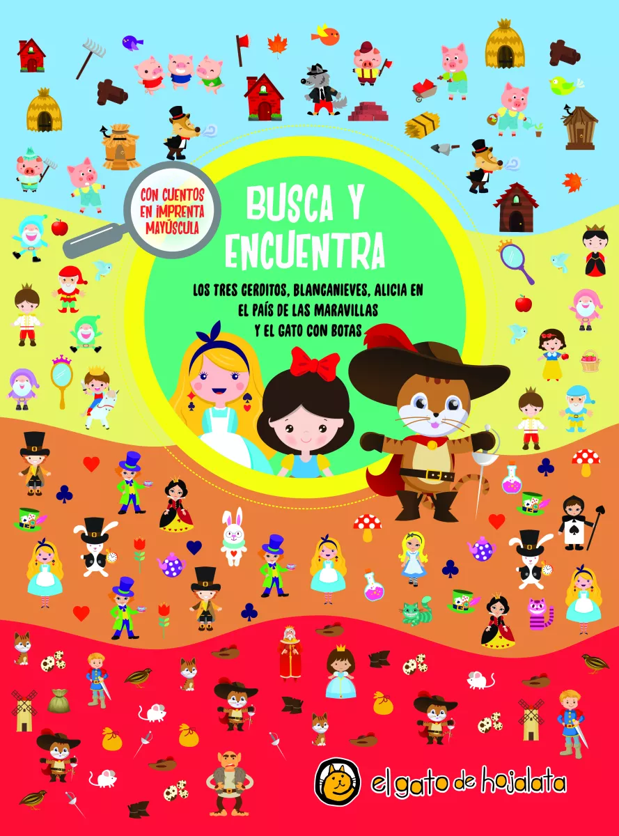 Un libro con cuatro cuentos originales en imprenta mayúscula y cuatro juegos de busca y encuentra. Lee cada cuento y busca y encuentra coloridos y divertidos animales que se esconden en el desierto, en el mar, en el bosque y en la nieve. ¡Lee, juega y diviértete con este original libro!