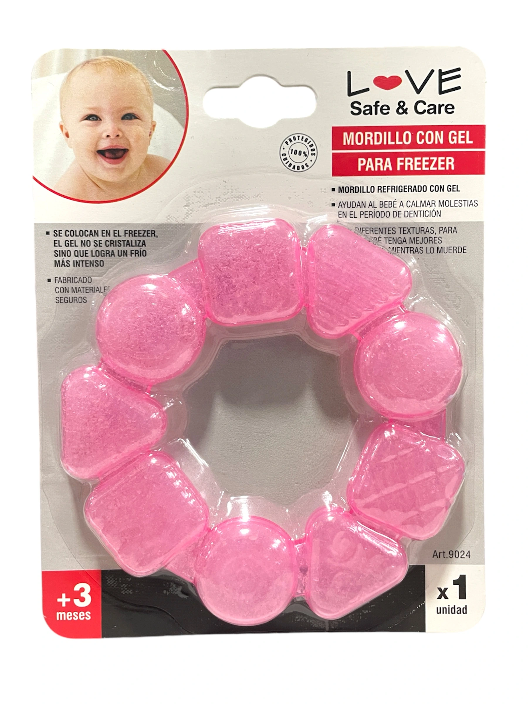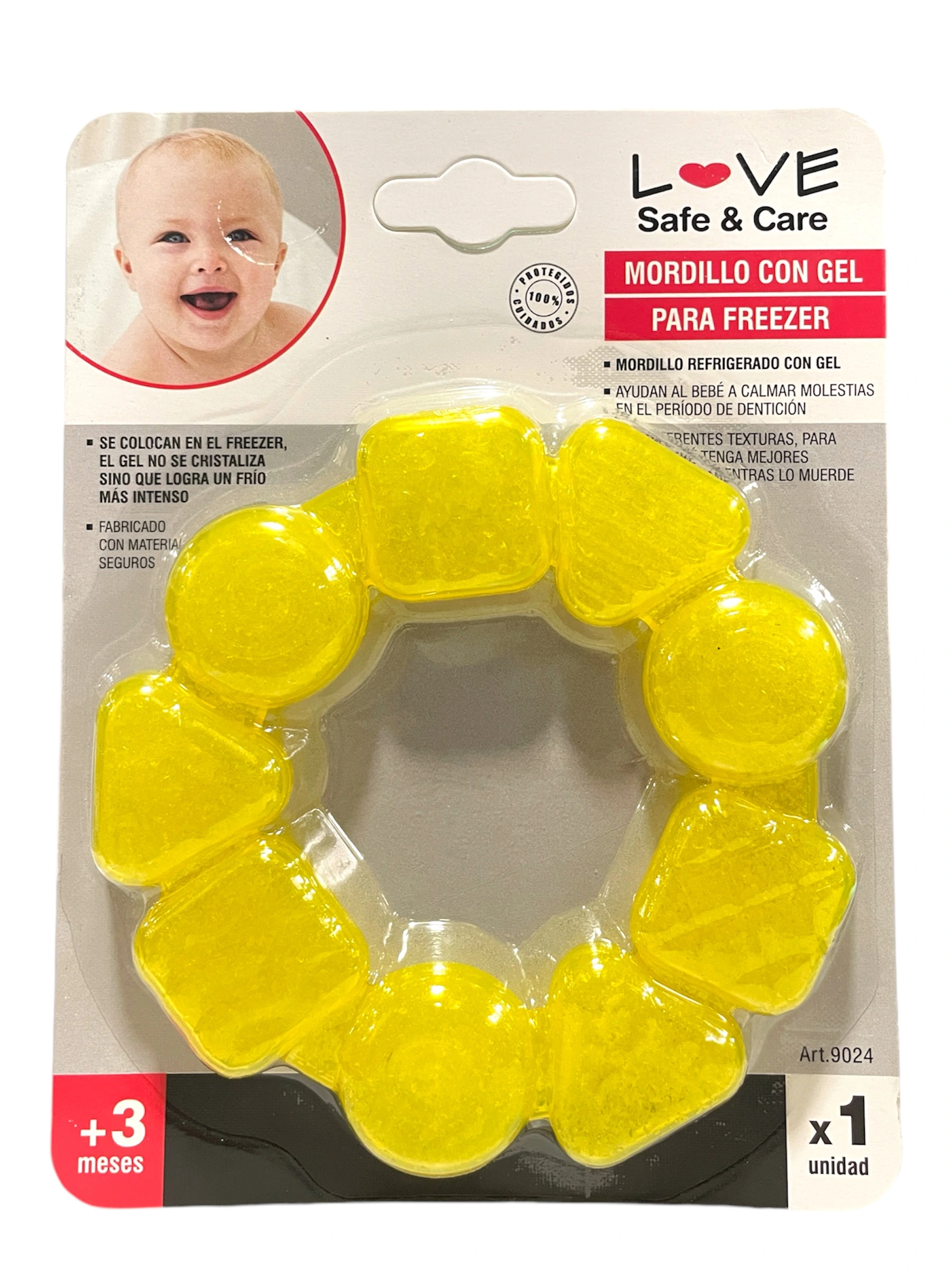 El Mordillo Refrigerante Dentición Bebés Love 9024 es el aliado perfecto para los pequeños en su etapa de dentición. Sus colores y forma circular atraen la atención de los bebés, convirtiéndo en un juguete divertido, facil de manipular y funcional. nFabricado en silicona de alta calidad, este mordillo es completamente seguro para los bebés. Libre de BPA, garantiza la salud de tu pequeño mientras alivia las molestias de la dentición. Su diseño permite que sea fácil de agarrar por las pequeñas manitas, promoviendo así su coordinación motora. nEdad recomendada: 6 Meses. nMedidas aproximadas: 10 cm de diámetro.