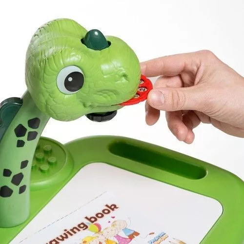 • Pizarra con proyector para calcar, con luz y sonido. n• Incluye 12 marcadores. n• 3 discos con diferentes dibujos (24 dibujos). n• Lleva 3 pilas AAA (no incluidas). n• Medidas: 44 x 26 x 43 cm.