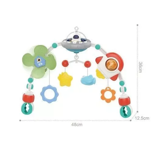 • Móvil para cochecito, cuna multiuso o huevito. n• Reproduce música suave y proyecta luz. Rotación 360º para acompañar al bebé a dormir. • Juguetes con sonidos. • Estimula el desarrollo sensorial del bebé. Con sonajero, molino de viento giratorio, anillo colgante y mordedor. • Embalaje: 1 x caja.