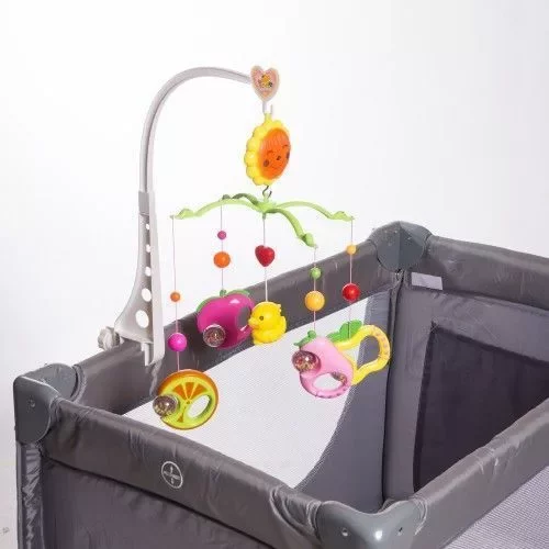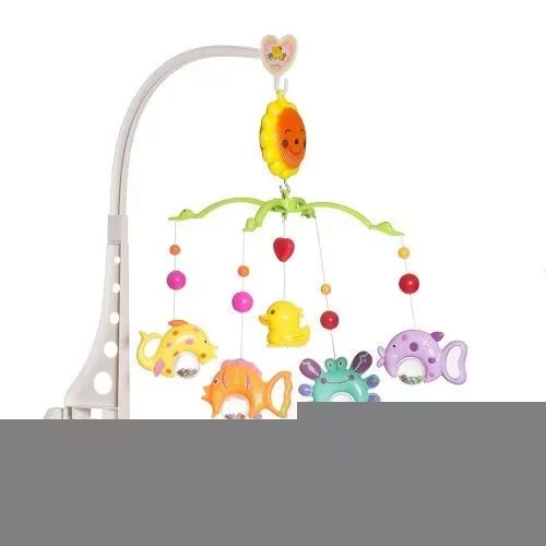 • Móvil cunero a cuerda con música y sonidos. n• Anclaje universal. n• Embalaje: 1 x caja.