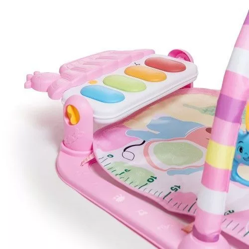• Alfombra / gimnasio de actividades con piano infantil desmontable. n• Con un arco. n• Luces y música. n• Juguetes colgantes para el bebé.