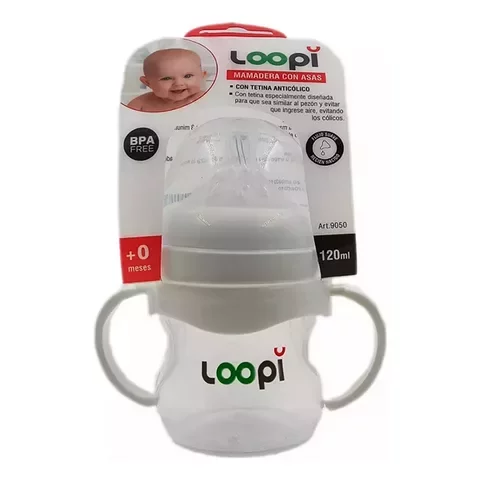 Mamadera apta desde 0 meses. nCon tetina flujo lento. nAsas que ayudan al bebé a realizar la transición de la mamadera al vaso. nCapacidad 120ml. nTetina anticólicos. nLibre de BPA.