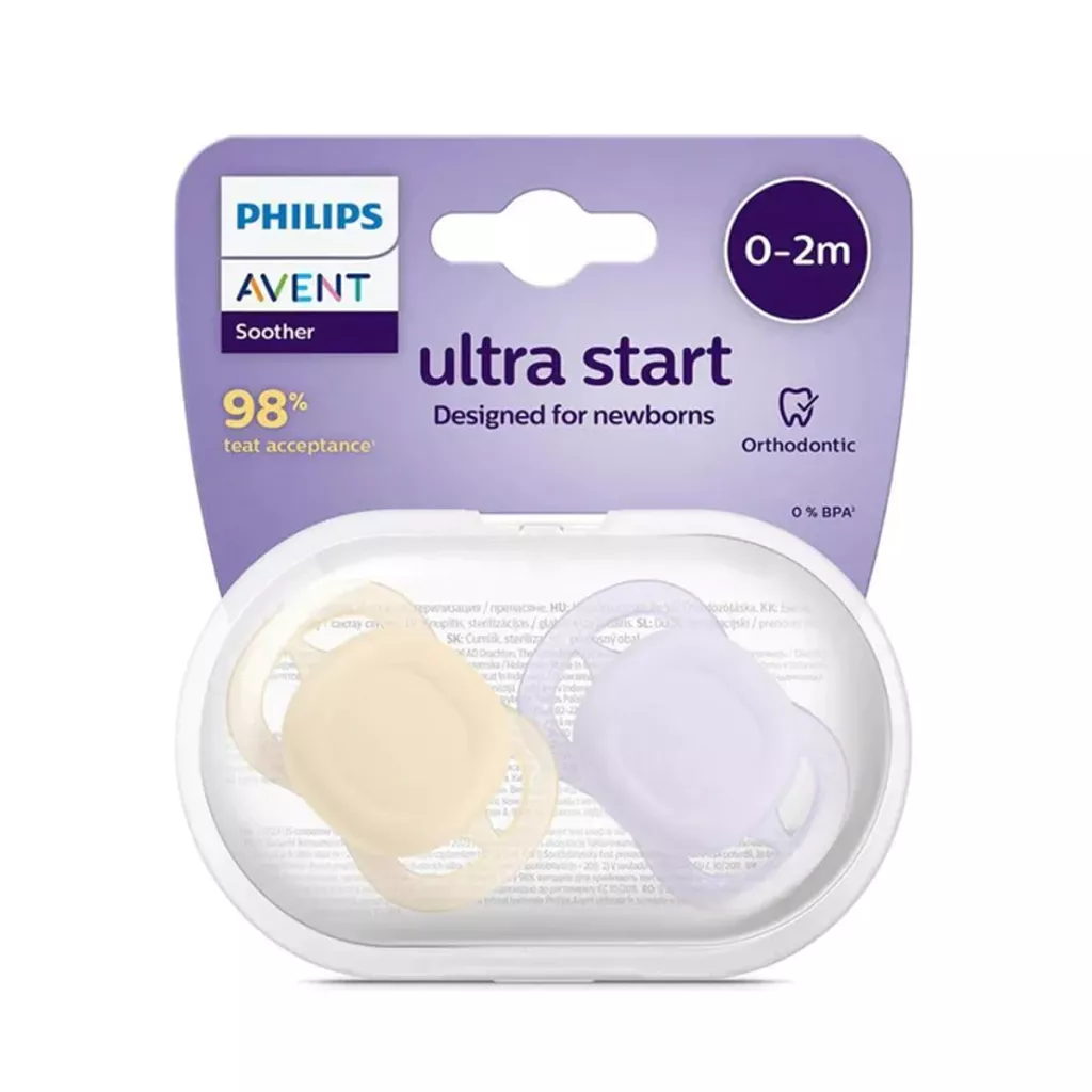 Tranquilidad y relajación desde el primer día. El chupete Philips Avent Ultra Start está diseñado para adaptarse a la boca pequeña de su recién nacido y se puede usar de forma segura hasta que cumpla los seis meses de edad. No importa quién esté cuidando al bebé, ¡la comodidad y el alivio están cerca!