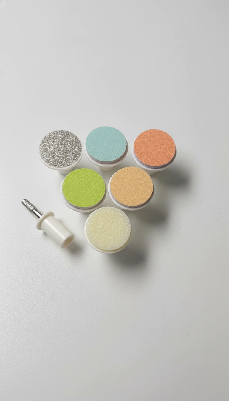 - 5 cabezales con distintas texturas para el pulido de las uñas que prefieras.